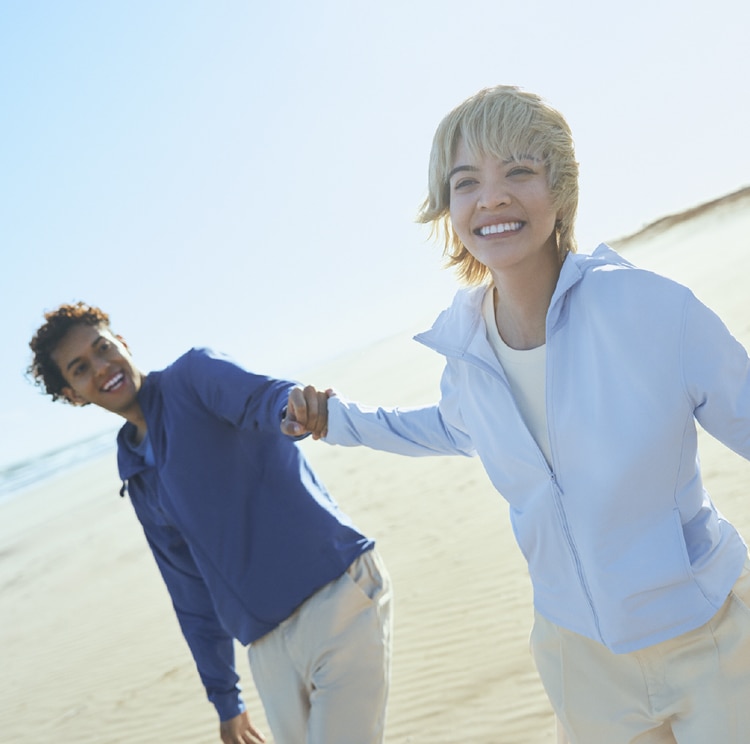 자외선을 흡수하는 원단. 원단 자체의 UV 차단 기술이 피부 보호를 한층 더 강화합니다.