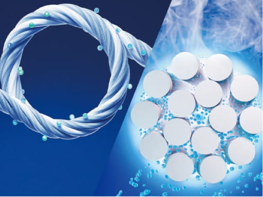 Special threads adsorb and neutralise the source of odours, such as perspiration on the garments. The odour elimination effect stays active even after repeated washing.