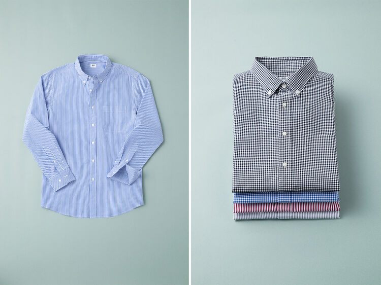 He wears: Oxford shirt, EZY ankle pants, HEATTECH socks