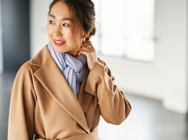The Milan-style knot is great because it produces a tight, orderly appearance that has depth around your neck. Slip the stole’s ends under the coat for a smarter, cleaner finish. Use this knot with chic items, like a Chesterfield, to foster a sophisticated look.