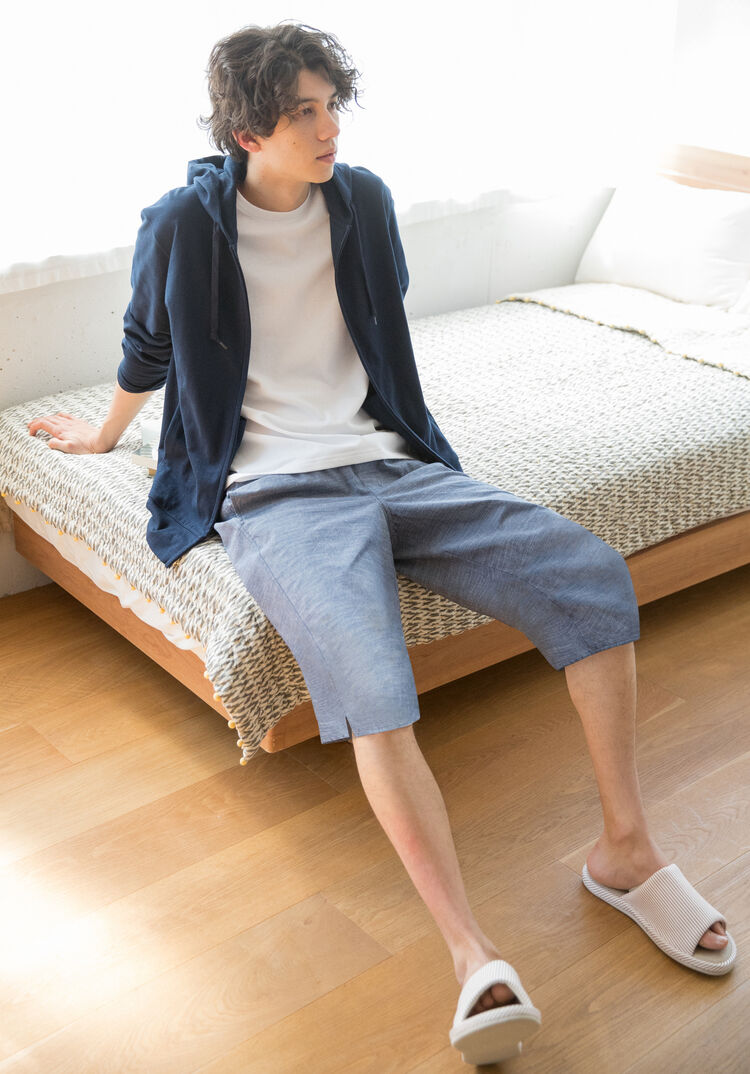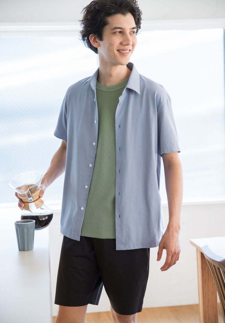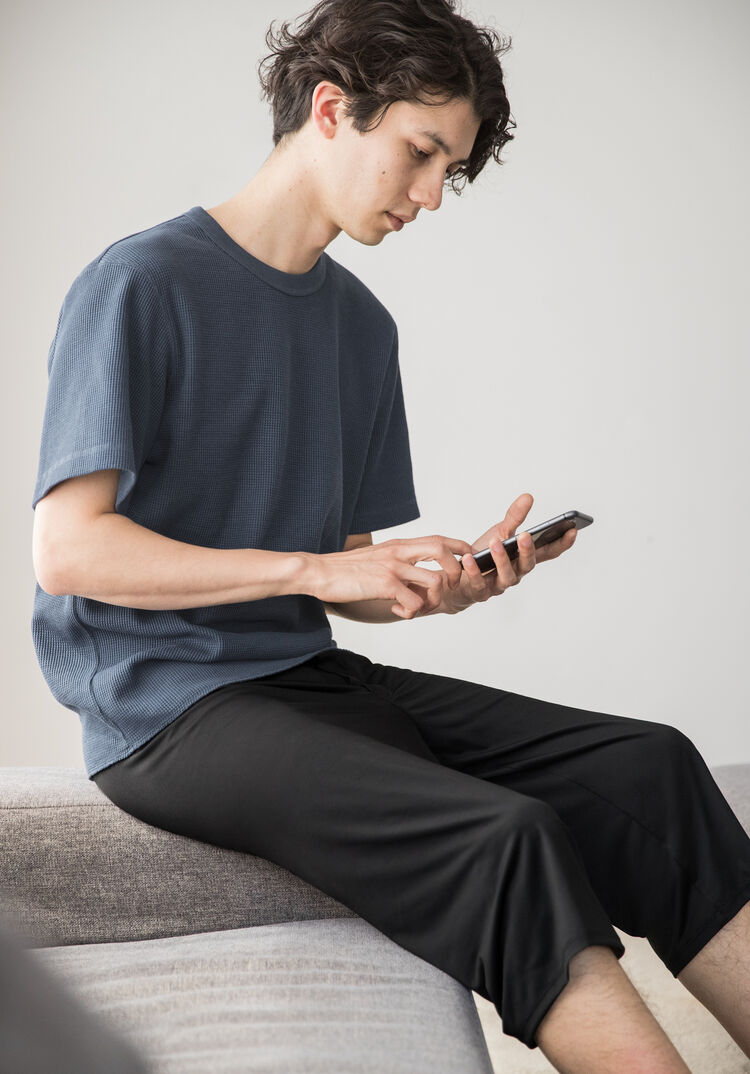 The AIRism Steteco shorts feel so smooth against the skin they’re said to be irresistible once tried. While some wear these shorts as innerwear under trousers and jeans, more and more men wear these as loungewear because they’re finding the shorts’ silky texture irresistible. The absence of seams at the sides is another detail that adds to the irritation-free comfort. And of course these shorts aren’t constrictive. Pair them to this tee, which is made of a super breathable waffle fabric, to complete a look that’s perfect for passing your relaxing hours in ultimate comfort.