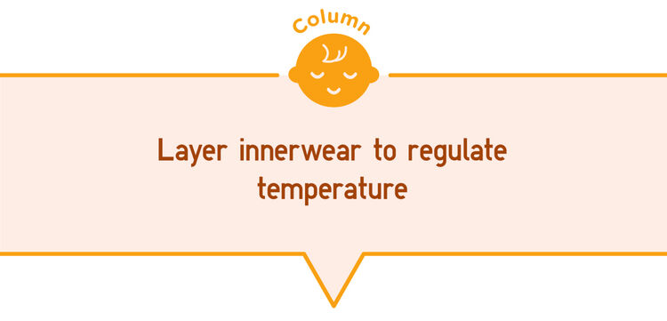 At first, move up in size about every three months. Avoid preparing overly large innerwear even if you think your baby will quickly grow into it. Innerwear that’s too loose doesn’t wick perspiration. It also hinders your baby’s movement. Choose the right size for your baby and move up in size in conjunction with your baby’s growth.