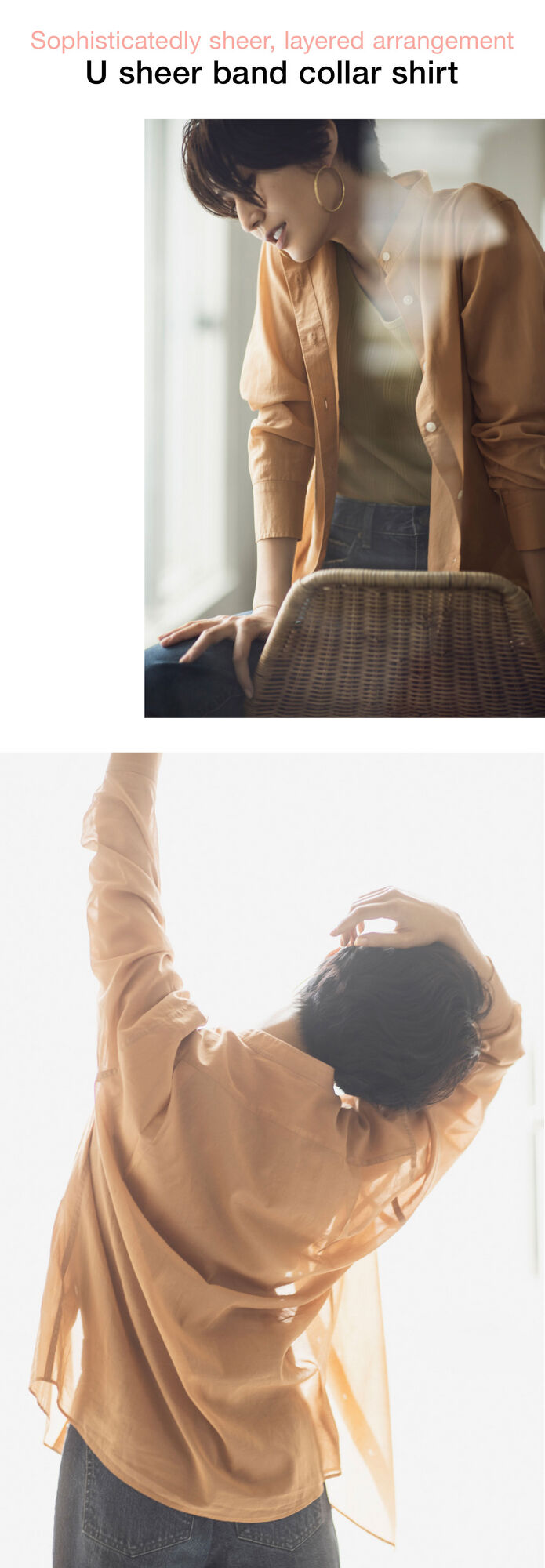 You’ll be relying on this item often because its ability to look great whether it is buttoned or not which, offers plenty of styling options. It also features a great combination of this season’s on-trend elements, like a band collar and sheer. Throw over a tank top and coordinate jeans to complete a laid-back arrangement. You’ll also love the exquisite color that comes from the Paris atelier of Uniqlo U and Christophe Lemaire’s design team.