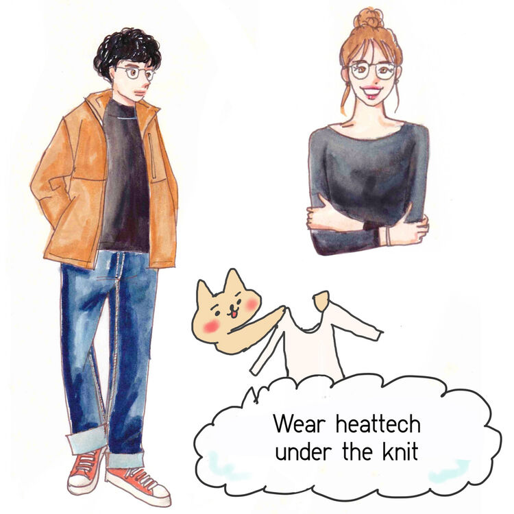 In October, the temperature difference will increase, and outerwear and knitwear will come into play. Especially on rainy days, the temperature often drops a lot, but if you wear heavy clothes, it's hard to move and it was unexpectedly hot. It is recommended to wear HEATTECH innerwear as a measure against the cold. It's thin, it's hard to wear, and it has various shapes, so you can choose it according to your tops. For the outer, block tech with durable water repellent function is convenient at this time. Although it is thin, it also has a windproof function, and it is difficult for the wind to pass through and you can keep warmth by just putting on one piece.