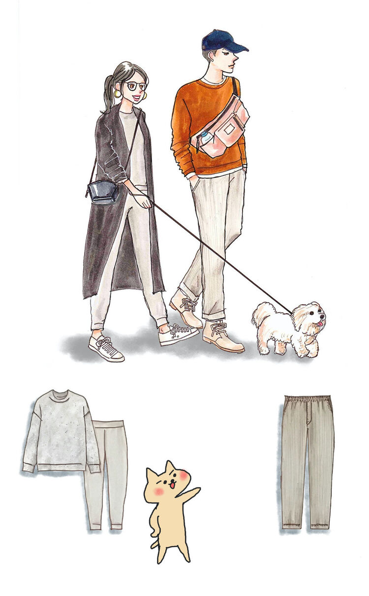 Loungewear is worn at home, so it’s generally loose and comfortable. In contrast, dress or formal wear is reflective of the occasion. Think attire that’s appropriate for the workplace or for shopping in. Until now, people often changed from dress wear to loungewear upon returning home so that they could switch from on-duty to off, but with more people working at home or participating in online meetings at home due to the growing acceptance of teleworking, the home is becoming less of a place to spend time off. The distinction between loungewear and dress wear is also blurring in a good way. For example, an increasing number of casual items have elastic waists, stretchy fabrics, and other features that add comfort and convenience.