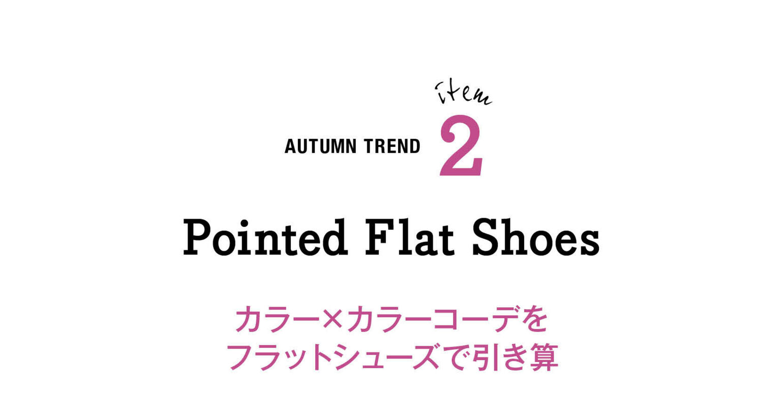 Use a pink gradation to update a classic sweater and leggings style! Then bring in minimalistic shoes to take the edge off and foster a good overall balance in this vividly colored coordinate. The shoes’ sharply pointed-toe design creates a sophisticated feel. This pair’s beige tone helps to produce a leggier appearance as well.
