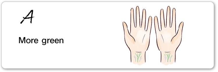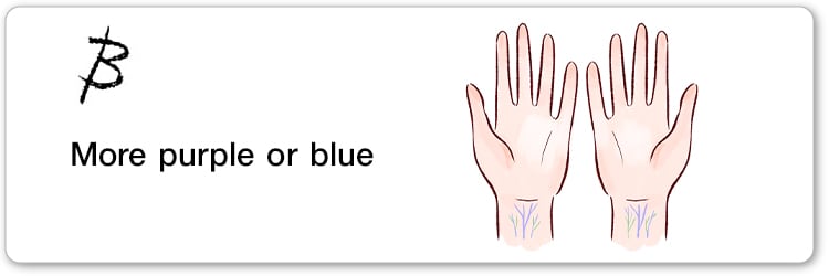 What color do you see most prominently when you look at both sides of your wrist?