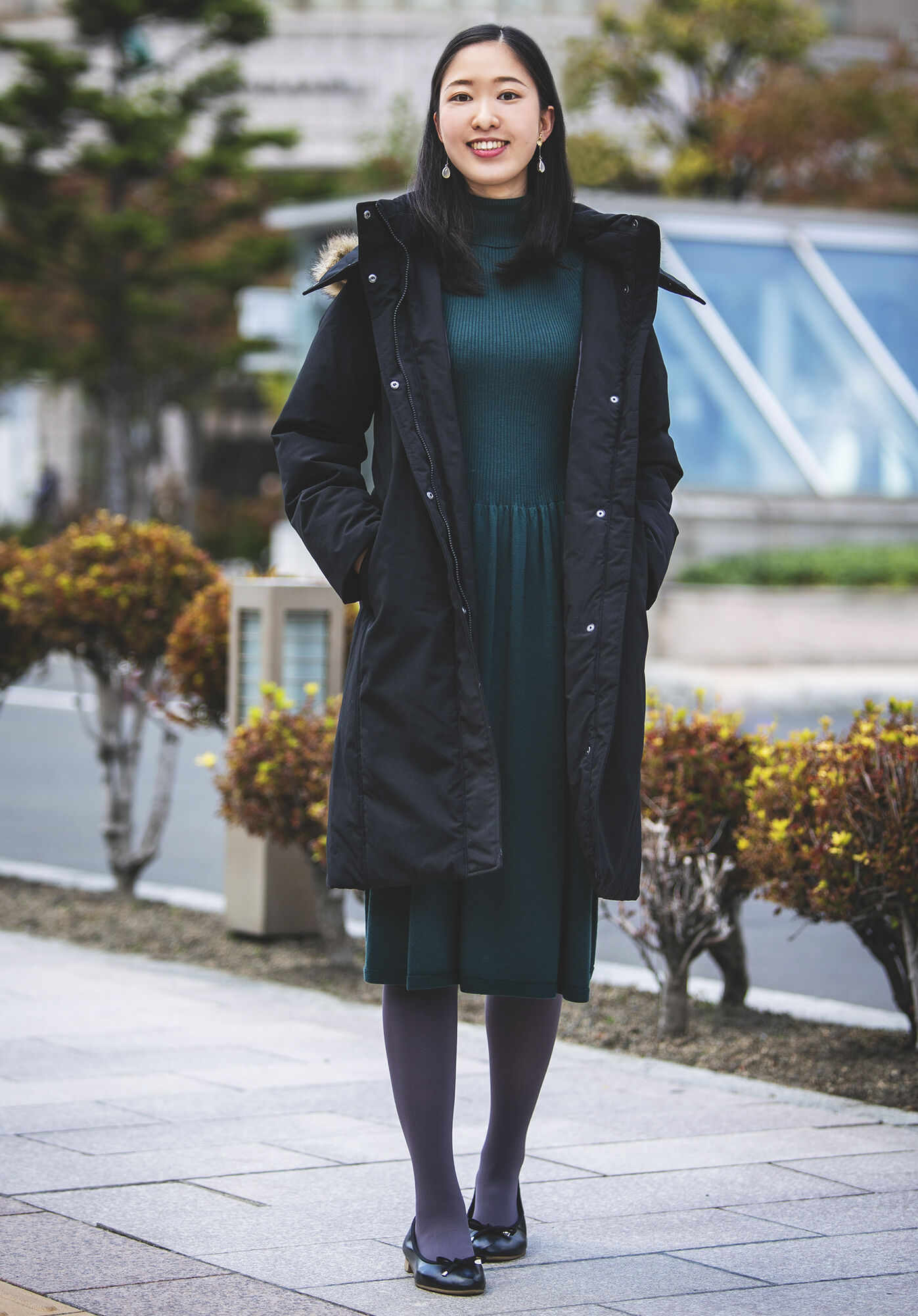 เริ่มจากชุดเต็มตัวที่สร้างสรรค์ขึ้นด้วยเทคนิคการถักผ้าดีไซน์ 3 มิติที่ช่วยให้สรีระดูสวยงาม เสริมความลุ่มลึกสไตล์โฉบเฉี่ยวด้วยสีเขียวเข้มพร้อมรับมือกับอากาศหนาวเย็นได้อย่างเหนือชั้นด้วยเสื้อตัวนอกไฮบริดดาวน์ที่มีประสิทธิภาพสูงสุดในการให้ความอบอุ่น และแมทช์รองเท้ากับถุงน่องสีเทาเพื่อเติมลุคให้เข้ากันอย่างกลมกลืน