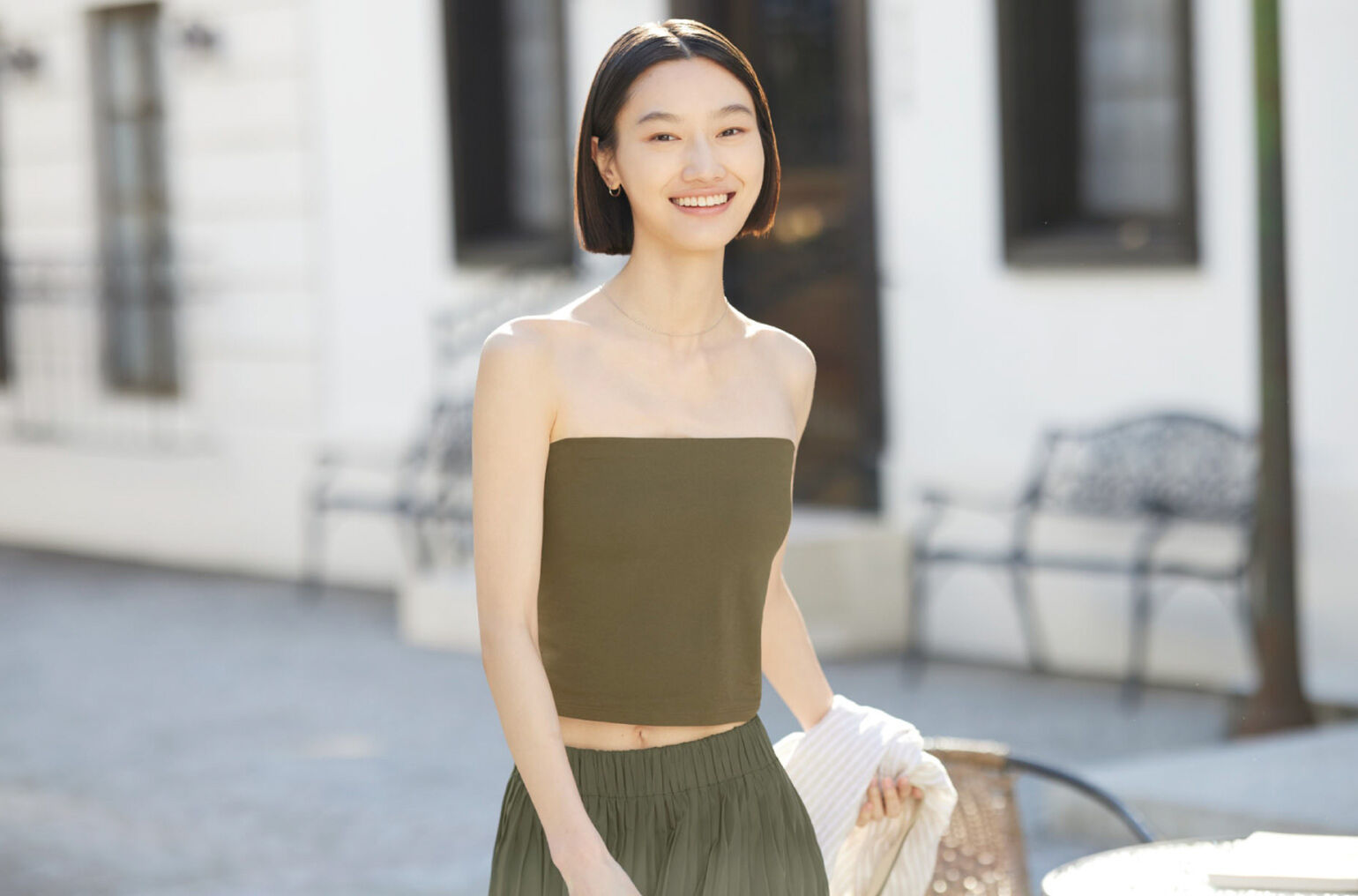- เพียงเลือกเอาบราท็อปแมตช์กับกางเกงขาสั้นผ้าลินิน คลุมด้วยเสื้อเชิ้ตลินิน และเพิ่มลุคด้วยรองเท้าผ้าใบและกระเป๋าดีไซน์แบบสาน ก็จะให้ลุคที่เข้ากับบรรยากาศซัมเมอร์ สามารถใส่ไปร้านอาหารหรือตลาดริมทะเลได้เลย
