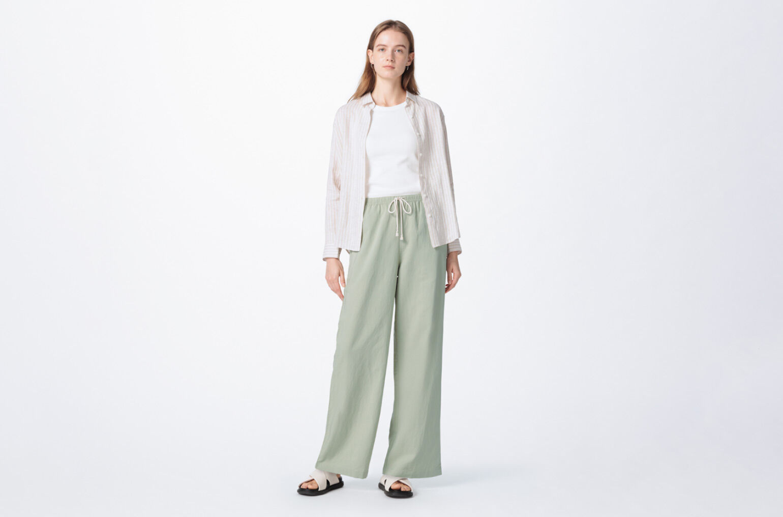 • Linen Blend Easy Pants ใส่ง่าย เนื้อผ้าใส่สบายเหมาะกับอากาศร้อน แถมแมตช์กับเสื้อเที่ยวทะเลได้หลายแบบ จะใส่ไปทานอาหารหรือคาเฟ่ริมทะเลก็ลงตัว