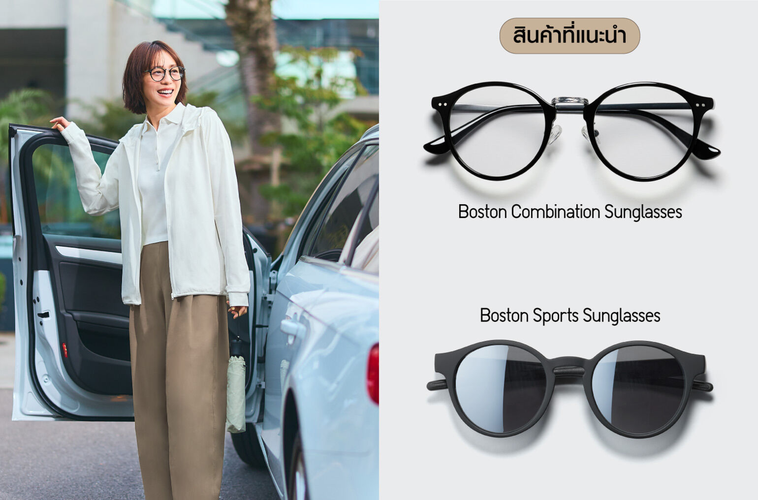 -Boston Combination Sunglasses ดีไซน์โดดเด่นที่มาพร้อมกับเลนส์กันฝ้าและเทคโนโลยีลดแสงสีฟ้า ใส่ขับรถได้แบบสบายไม่ปวดตา