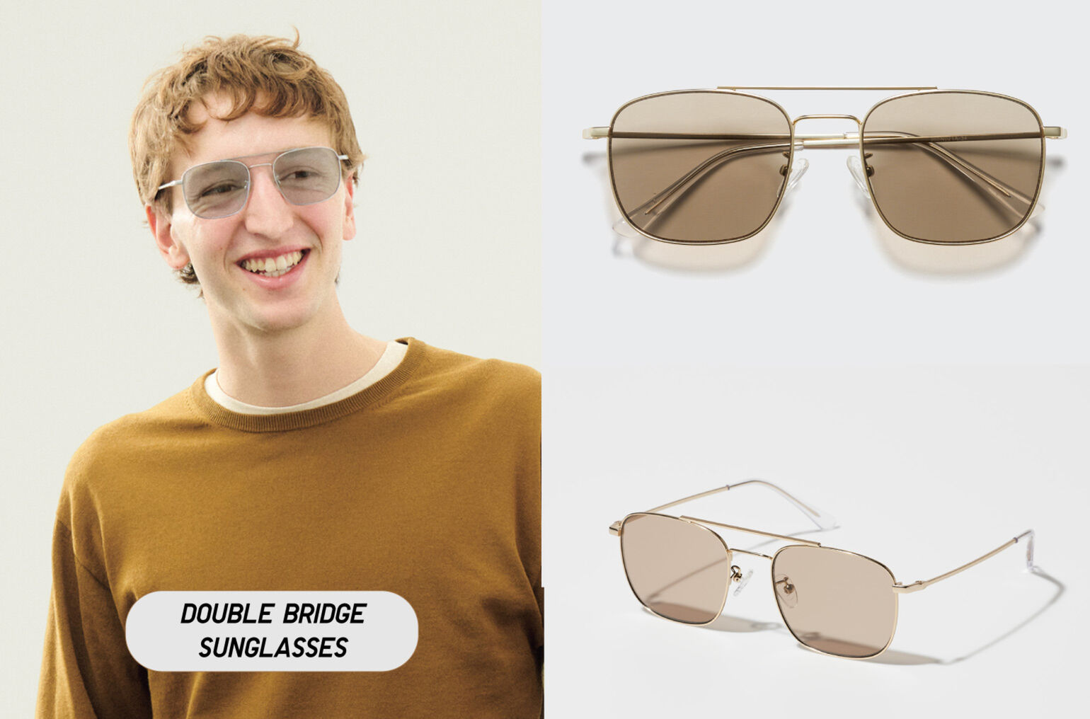 - Double Bridge Sunglasses ด้วยดีไซน์คลาสสิกแต่ยังคงความสุภาพไว้ในสไตล์ที่เรียบง่าบ เหมาะกับใส่ไปทำงาน เสริมลุคในวันมีประชุมได้อย่างมืออาชีพ