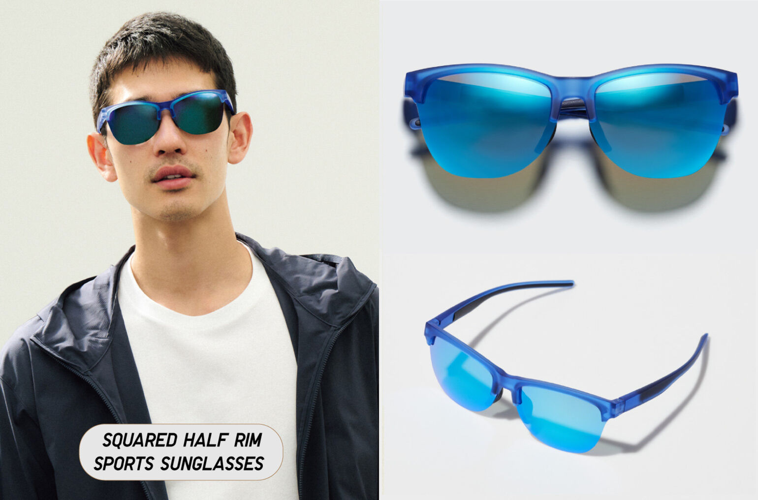 -Squared Half Rim Sports Sunglasses แว่นกันแดดดีไซน์ครึ่งกรอบ ใส่แล้วเท่สไตล์สปอร์ต พร้อมคุณสมบัติ UV Protection