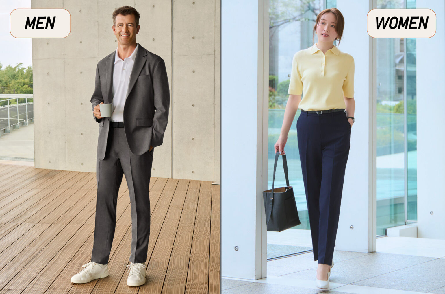 - สร้างลุคชุดทำงานแบบมืออาชีพ ด้วยการเตรียมเสื้อแจ็คเกตที่นำไปใส่ได้ทุกสถานการณ์เหมือนสูท อย่าง Miracle Air Jacket มาคลุมทับเสื้อเชิ้ต Super Non Iron Shirt พร้อมแมตช์กับกางเกง Miracle Air Pants และคาดเข็มขัดหนัง ซึ่งช่วยคอมพลีตลุคที่สุภาพได้เป็นอย่างดี