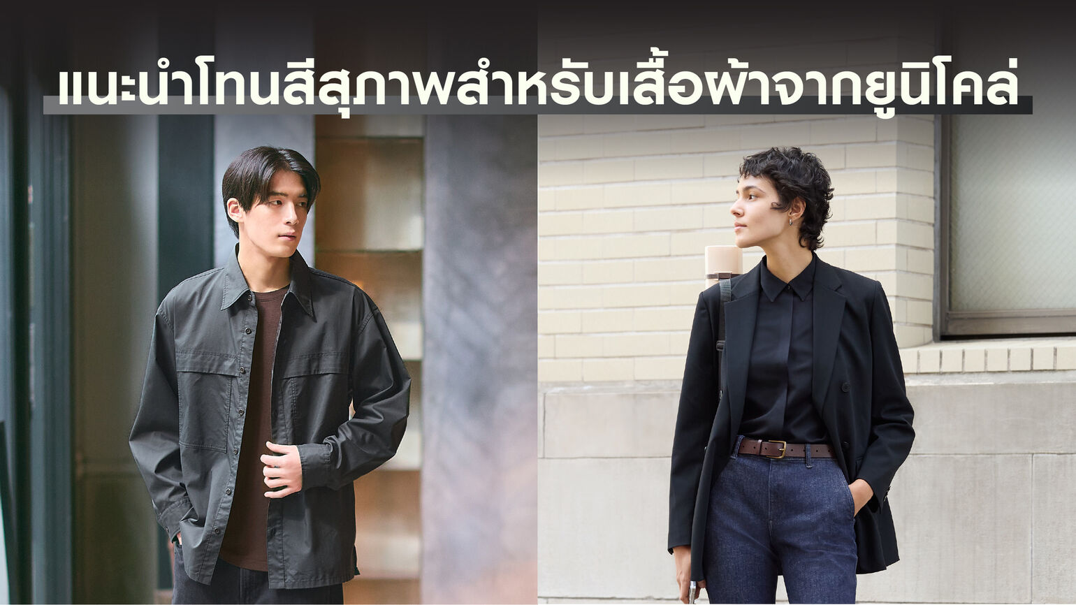 ยูนิโคล่ขอแนะนำเสื้อผ้าโทนสีสุภาพ ไม่ว่าจะเป็นสีดำ สีขาว สีเทา หรือสีกรมท่าดังนี้