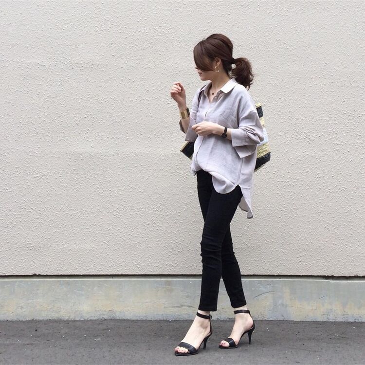 Oversize的襯衫,讓人看起來更顯瘦。只要將前方衣襬紮起,就能拉長視覺比例。