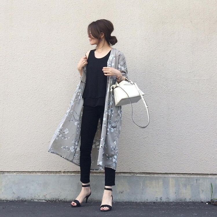 外面罩上長版開襟襯衫時,內搭就可運用黑X黑呈現。