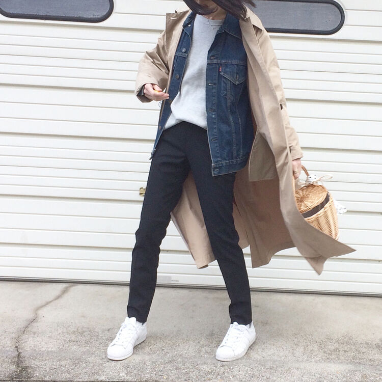 多數人都會穿牛仔褲搭配風衣,但其實黑褲也非常合適,只要再搭上運動鞋,就是十足的休閒率性風。