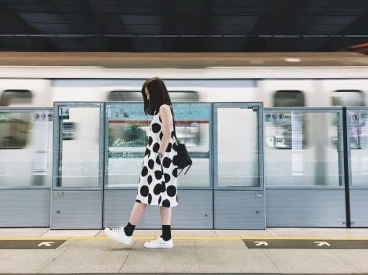 上下身都白色的穿搭,只要加入黑色元素的褲襪、包包等配件就能平衡,不會顯得太過甜膩。