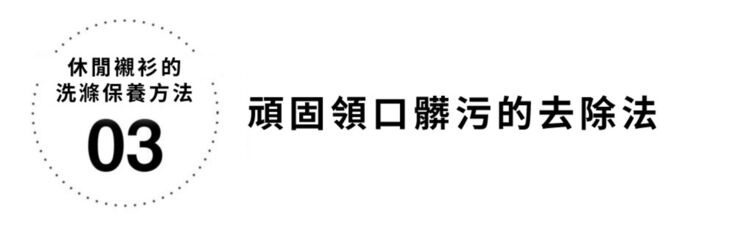 以溫水手洗,在不過份擰衣的潮濕狀態下晾乾的話,衣服會因為水份的重量使得皺摺不易展開。可先在令人在意的髒污部位沾上洗劑預先搓洗。直到髒污已被去除到一定程度後,以溫水清洗就可將皮脂成份溶出。特別是在接下來的季節,氣溫升高、洗後衣物快乾,建議採用這種洗法。