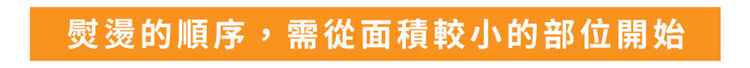 若從面積較大的部位開始,在持續動作中,已經燙好的部位又會容易起皺。為了不做第二次工,基本上需從面積較小的部位開始燙。若是襯衫的話,建議以「領子→前片→袖(袖口→袖子本體的順序)→後衣身→前衣身」的順序熨燙。若有較深的皺摺,可噴一點水,讓其充份濕潤再燙,更能燙出優美衣型。