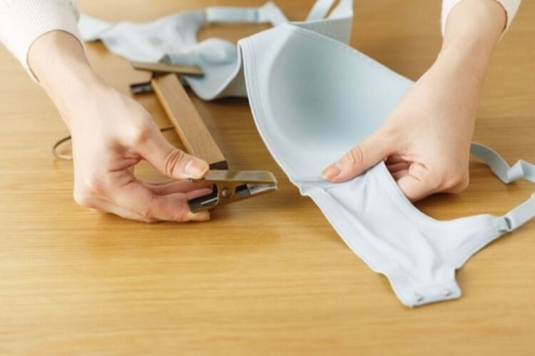用曬洗衣夾夾在其他部位的話,會因為涵蓋水分而變重,造成材質走樣,胸罩就無法貼合身形。若是擔心的話,攤平晾乾會比較理想。