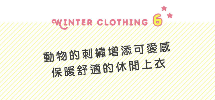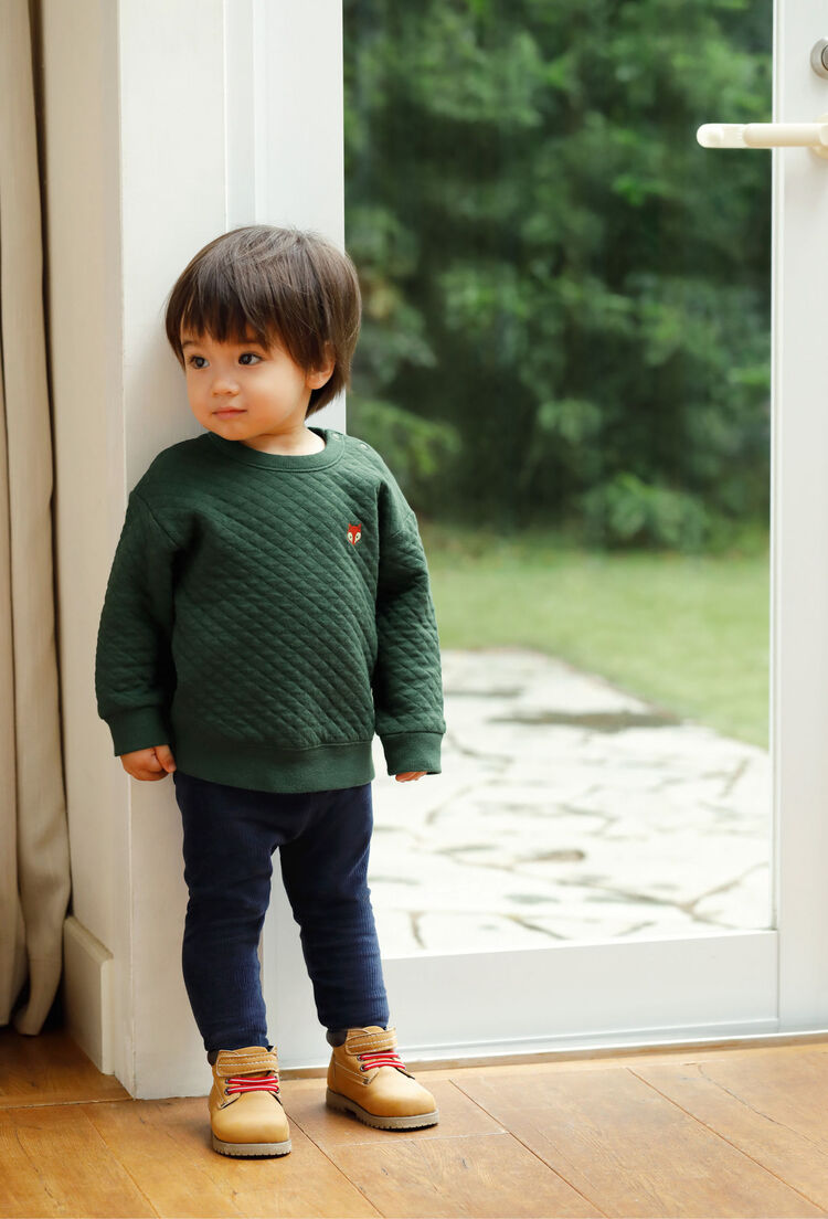 作為冬季的幼兒園穿搭服,無論擁有幾件皆十分便利的休閒上衣。採用富含空氣的保暖鋪棉材質,擁有4款色系,並且皆繡有刺蝟、松鼠、狐狸及貓頭鷹的動物圖案。觸感舒適且設計不會過於可愛,是永不退流行的設計。附有肩開的按扣設計,讓更衣更加方便。