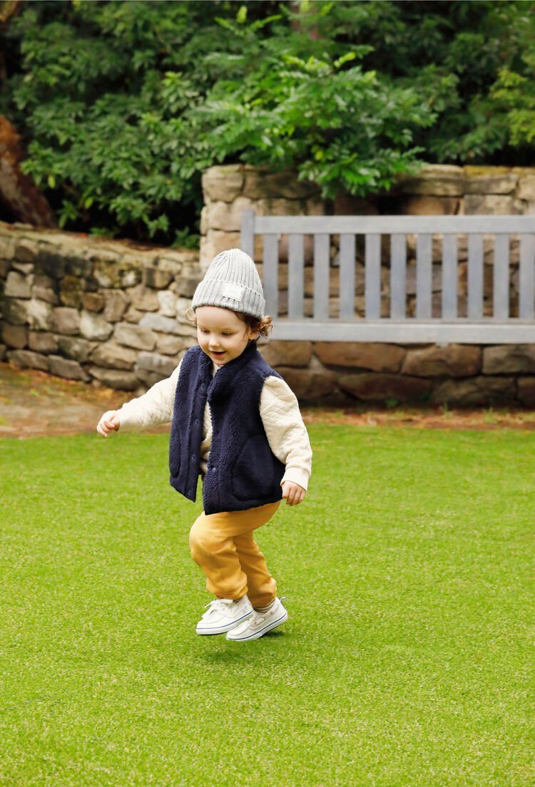 外型蓬鬆可愛的毛絨刷毛背心,內裡使用膚觸舒適的天竺棉,在寒流來臨的日子只要將毛絨刷毛翻到內側穿上即可瞬間保暖。對於活潑好動的孩童而言,背心往往比外套還要更易活動,在季節的轉換時節中,背心也是必備的單品之一。
