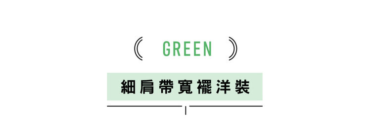 綠色是今夏引領時髦的流行色彩,使用開心果綠更能營造輕盈優雅的印象。寬襬設計的優美細肩帶洋裝最適合內搭白色T恤。加入編織帽及涼鞋就完成清涼感十足的洋裝造型。