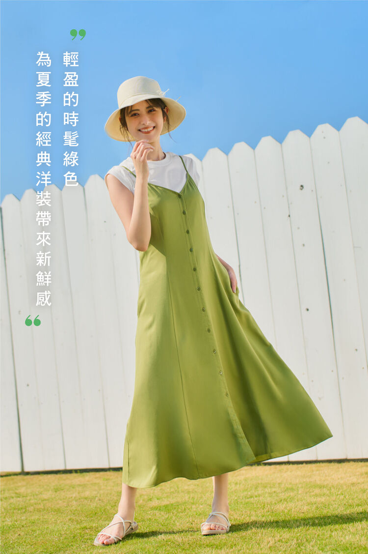 女裝 排釦細肩帶寬襬洋裝>>單品立即看