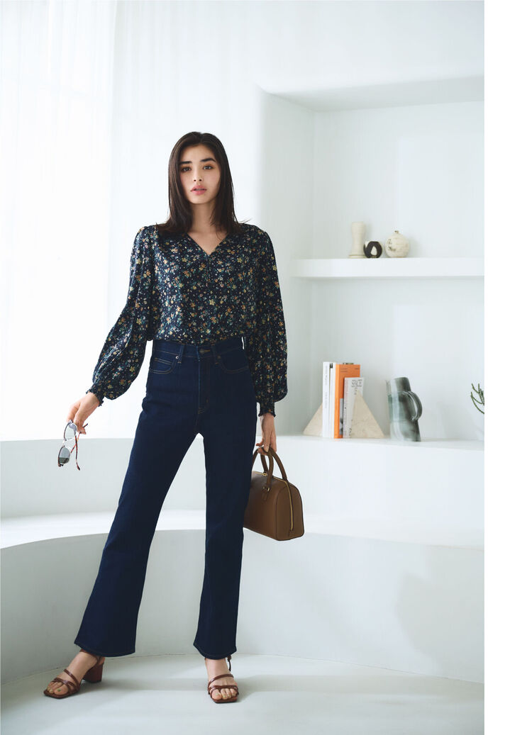 以舒適的細緻材質及恰到好處的寬鬆版型而大受歡迎的高雅細圓點圖案嫘縈印花上衣,再度推出三個季節都可穿著的長袖款。無論紮上衣的正式穿法或放出衣襬的休閒搭配法都很好看,作為外套也沒問題。進入秋季後也可以外搭寬鬆休閒上衣或針織上衣來打造層次穿搭。