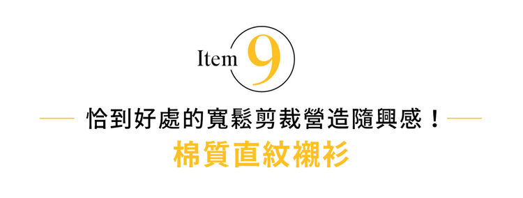 採用軟硬適中的棉質,穿起來不失正式感卻又有親膚的輕盈舒適。稍寬鬆的版型設計,紮入打褶褲的洗鍊風搭法也能營造不過於死板的印象。且拜寬鬆版型之賜,隨興套上視覺上也不失平衡感,夏季時做為輕便外套也不錯!