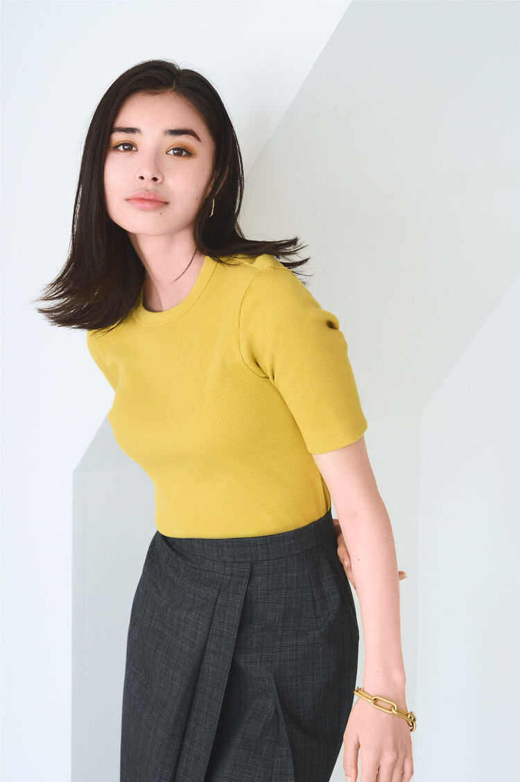 利用羅紋的顯瘦效果打造俐落線條,卻又不過於貼身。稍具厚度的材質即使內搭衣物也不會凹凸不平,即使單穿也能很有型。選用百搭的基本圓領款式,在進入秋季後加上外套等層次穿法也相當好搭配。