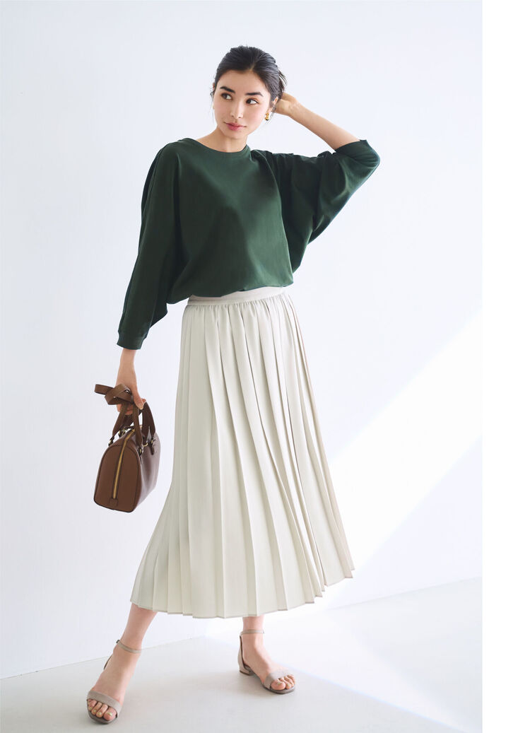 寬鬆版型加上變化感的連袖設計,選用品味十足的雅緻綠色,打造單穿就很有型的長袖T恤。乍看是休閒感單品,搭配百褶裙等甜美系單品也毫不違和。採用四季都適穿的棉質素材,夏天可將袖子捲起營造隨興感,初秋放下袖子則顯得俐落又大方運用能透過不同的穿法或搭配方式,成為跨季時尚單品。