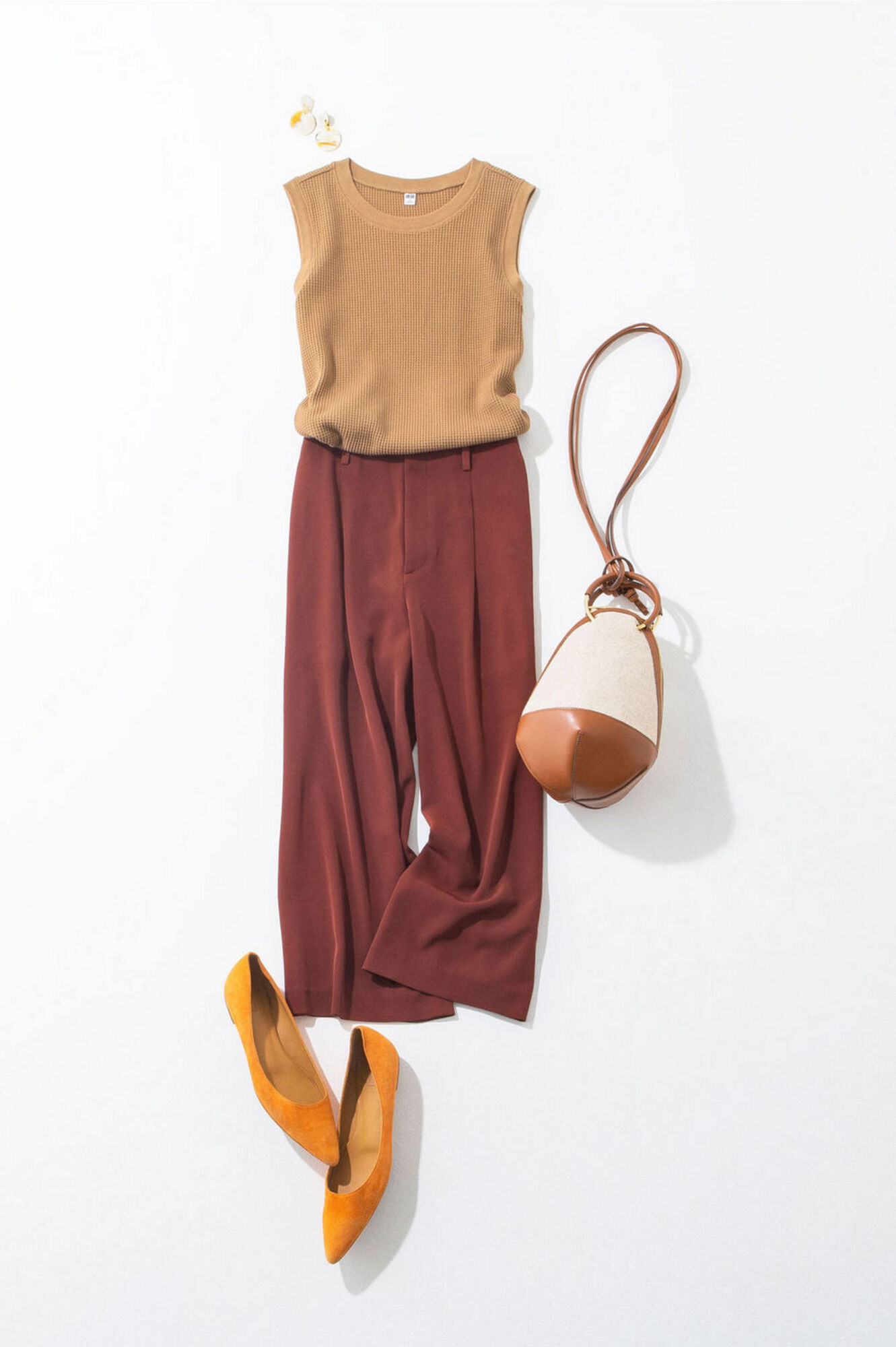 簡單又能展現超強穿搭技巧的全身中性色漸層造型,推薦給初次挑戰磚紅色的人。顏色較深的話,記得要露出肌膚或用素材平衡整體俐落感。