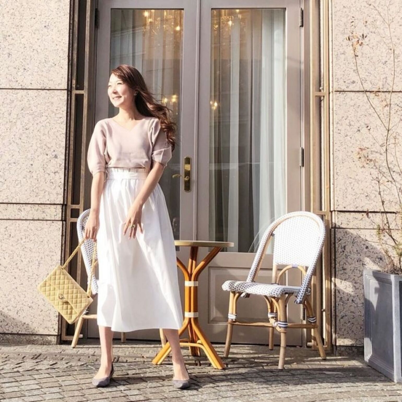 用寬鬆土耳其袖修飾肩部到上臂的線條,同時提高腰部位置,就能展現出苗條纖細的效果。
