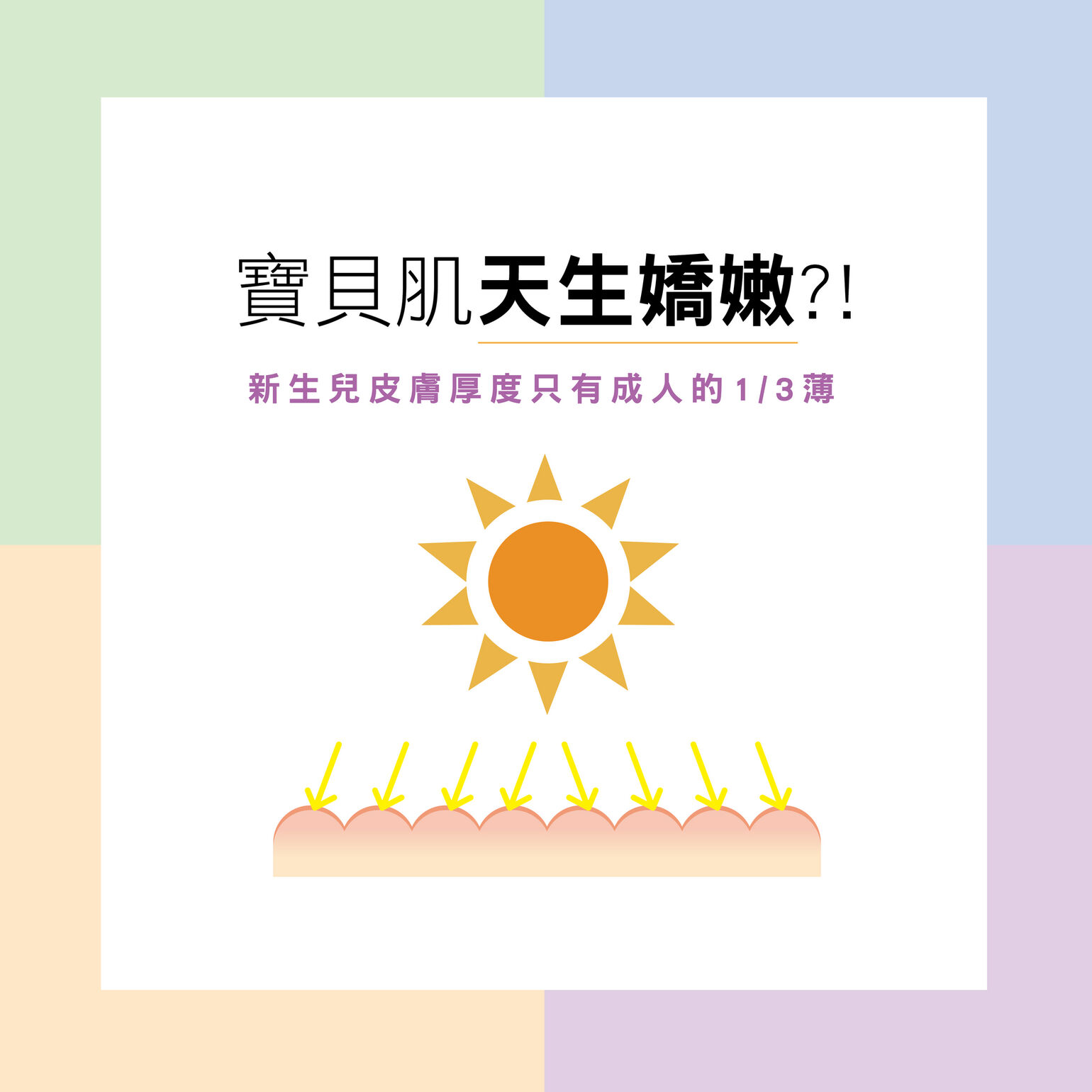 孩子的肌膚較為嬌嫩敏感,皮膚厚度較成人薄,黑色素細胞也逐步發育中,還不足以抵禦紫外線。因此在毒辣的太陽下只要短時間曝曬,就容易曬傷或是陽光過敏。