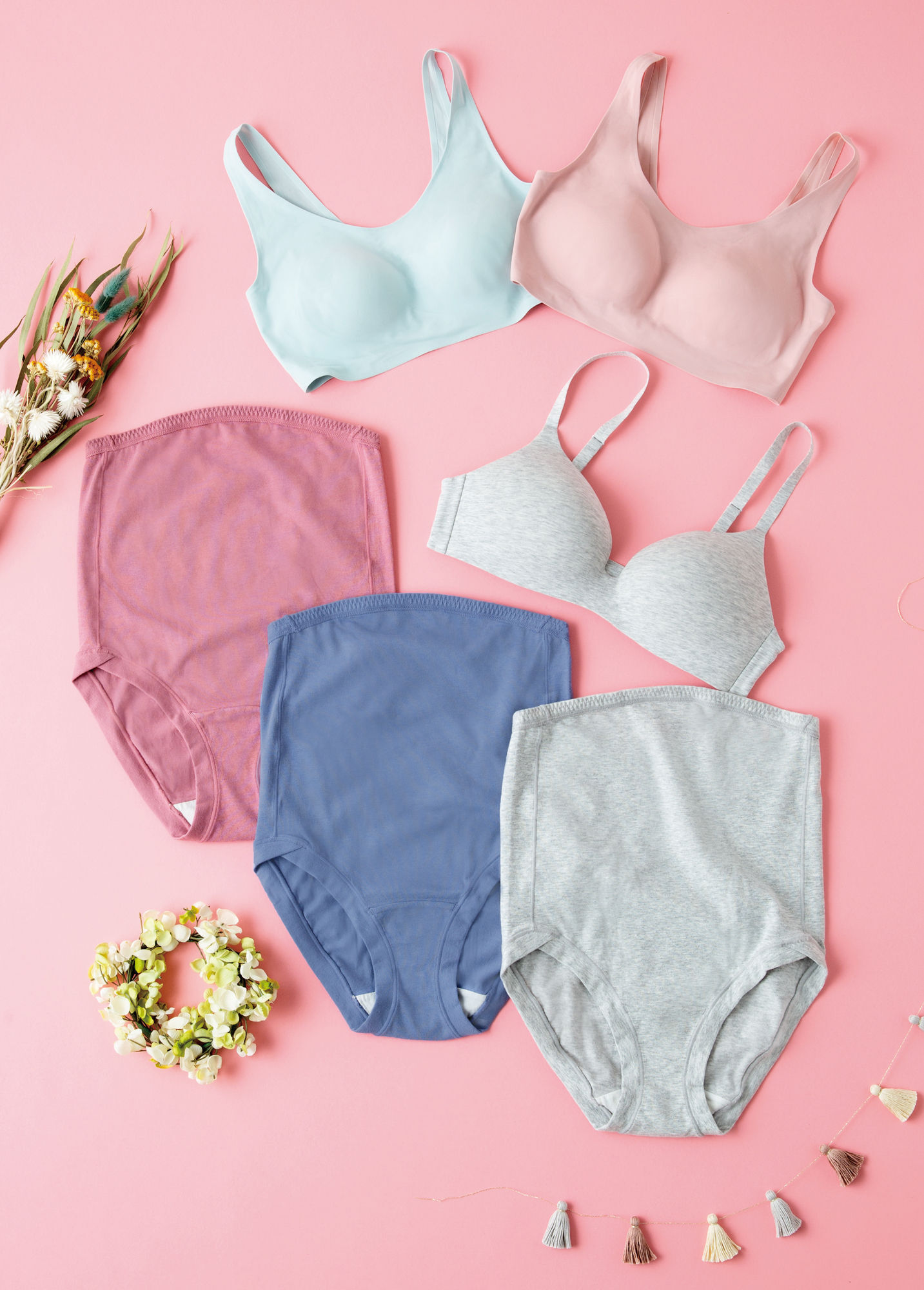 孕期中因為受到賀爾蒙分泌的影響,肌膚會變得較為敏感。無鋼圈胸罩與高腰包腹內褲減少與肌膚直接接觸的車縫線,讓觸感變得更加舒適,受到孕媽咪們的廣大好評。使用伸縮彈性佳的材質,能應付日漸隆起的孕肚。從孕期開始到後期都可以使用。