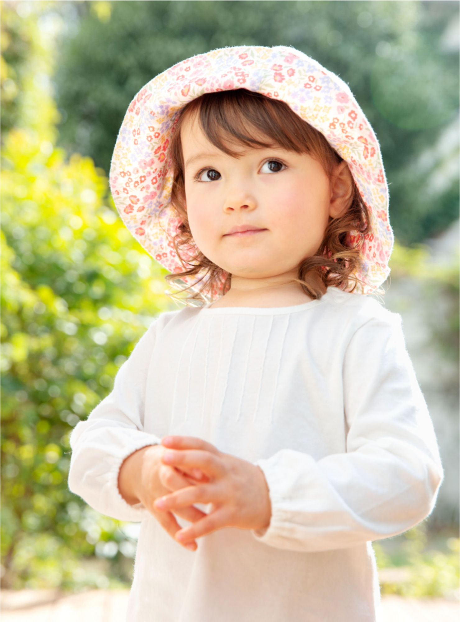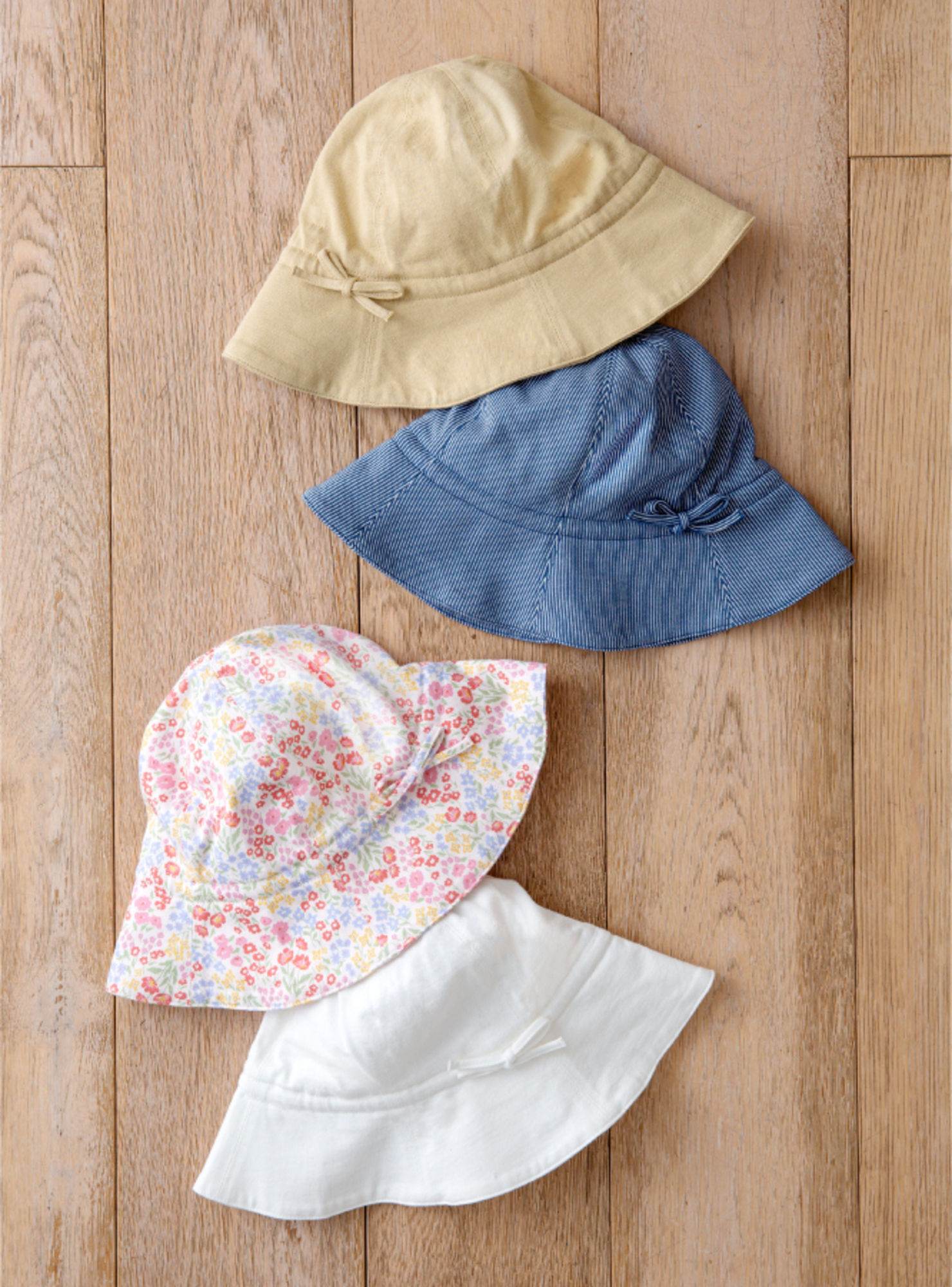 能遮蓋到容易曬傷的頸部部位,帽緣較寬的Uniqlo帽款是紫外線對策不可或缺的必備單品之一。因為嬰兒與孩童頭部容易出汗,建議多準備幾頂以作為換洗及搭配之用。