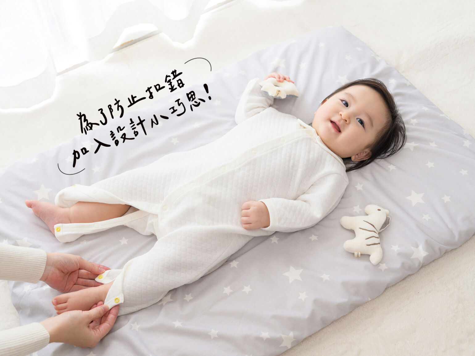 從新生兒時期就派得上用場的寶寶服裝「連身衣」,由於是前開式設計,寶寶躺著也能輕鬆穿脫,對爸媽來說十分方便。不過,根據《たまひよ(Tamahiyo)》編輯部收到的爸媽回饋,釦子的困擾也是相當普遍的隱憂之一。像是:「最後才發現扣錯了,只好整個重來…」「扣子要很用力才扣得上,超費勁」「每次換尿布或換衣服,爸爸總是一邊扣一邊抱怨:『又來了~!』」這些看似小問題,其實很多爸媽都有同樣的困擾。