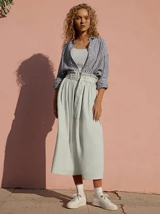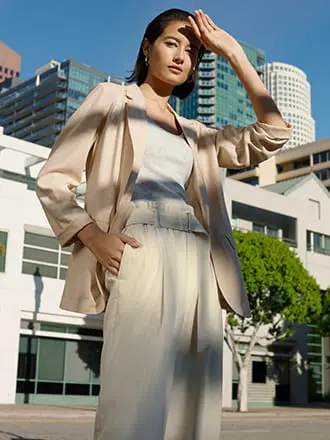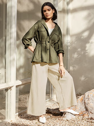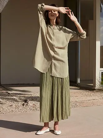 亞麻混紡嫘縈材質,保有天然的膚觸,柔滑的垂墜感更顯高雅魅力。