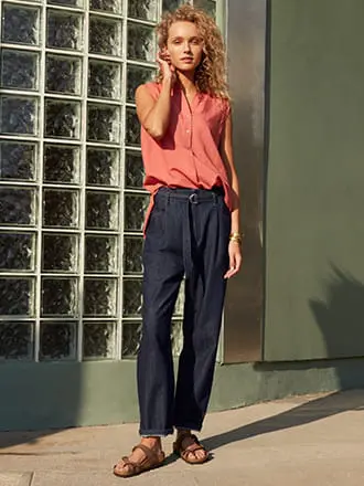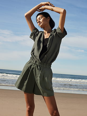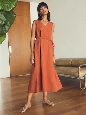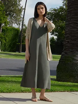 可作為洋裝,也能當作罩衫。清爽舒適的亞麻混紡。