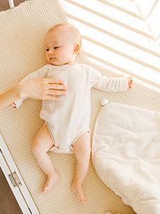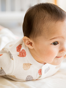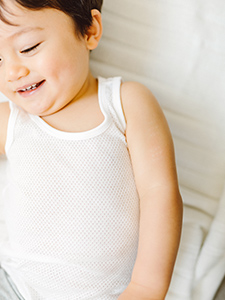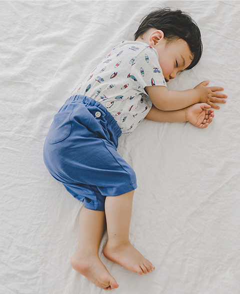 在嬰兒的成長過程中,良好的睡眠品質不可或缺。 以不會妨礙翻身的高彈性,及容易吸收‧排汗的材質,提供嬰兒每日高品質的睡眠。