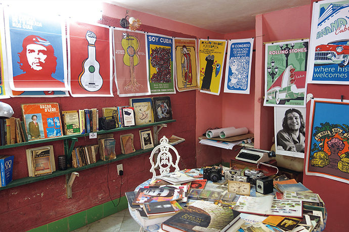 Poster shop in the old town. Reprints of revolutionary posters form the bulk.In Cuba, over 70% of the workforce is employed by the government, earning an average monthly income equivalent to $30. The disparity in standard of living among the Cuban people is infinitesimally small. Despite a scarcity of goods, this has been a place where neighbors share whatever they have, retaining a spirit of cooperation that has been forgotten in most developed countries.