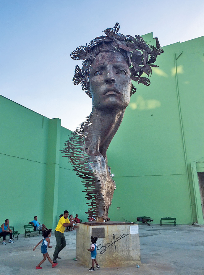 Public art by sculptor Rafael San Juan, installed on the Malecón.There is also increased access to information. A large number of people, mostly young, own smartphones and are connected to the internet. Young people spend a great deal of their money on expensive data packs that offer only a limited amount of access time and text with their friends constantly: while driving, while eating, and sometimes even while they’re working. At the parks and plazas that have Wi-Fi, you often see people staring at their phones.