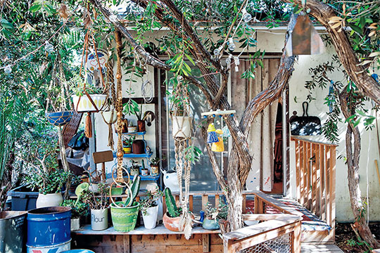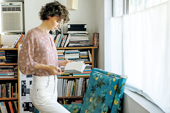 Miranda July’s office stands in a secluded corner of a leafy residential area. “This is where I lived when I moved to LA 16 years ago. Since I started living with my husband Mike [the artist and filmmaker, Mike Mills], I’ve been using this house as my office.” Almost every day, Miranda makes the ten-minute drive from her house to her office. Surrounded by palm trees, cacti and succulents, this cozy space is brimming with artifacts from Miranda’s creative life. “I just finished a book that archives all the work from the last 30 years. That room back there is a total mess with piles of old letters and journals spread out everywhere, so I’d advise against going in there,” Miranda laughed. She pointed at a clothes rack in the living room. “Here’s some costumes for a film project that I’m working on. This window always has nice light, in case I need to shoot something. There are always lots of things going on at once, so I don’t have to be very tidy, as long as the space functions.” Gentle light streaming through the muslin curtains makes the space feel worlds apart from the harsh sunlight of LA, just beyond the windows.