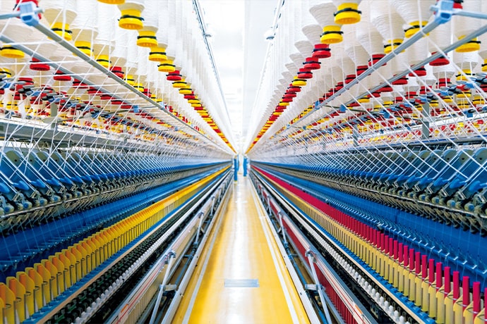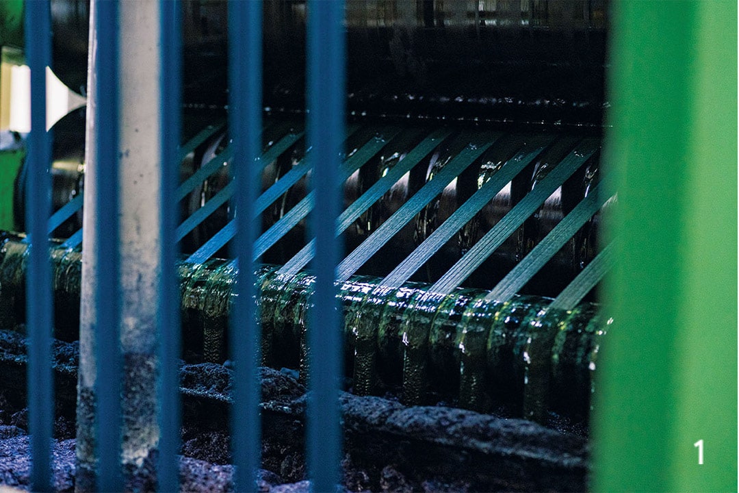 The rows of state-of-the-art spinning machines at the Kaihara factory are a sight to behold. First, raw cotton is combed into strands. These strands are made into ropelike “slivers,” which are then stretched and twisted into thread.