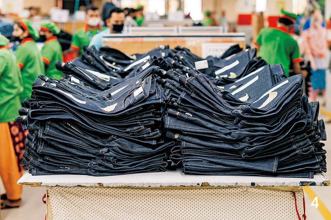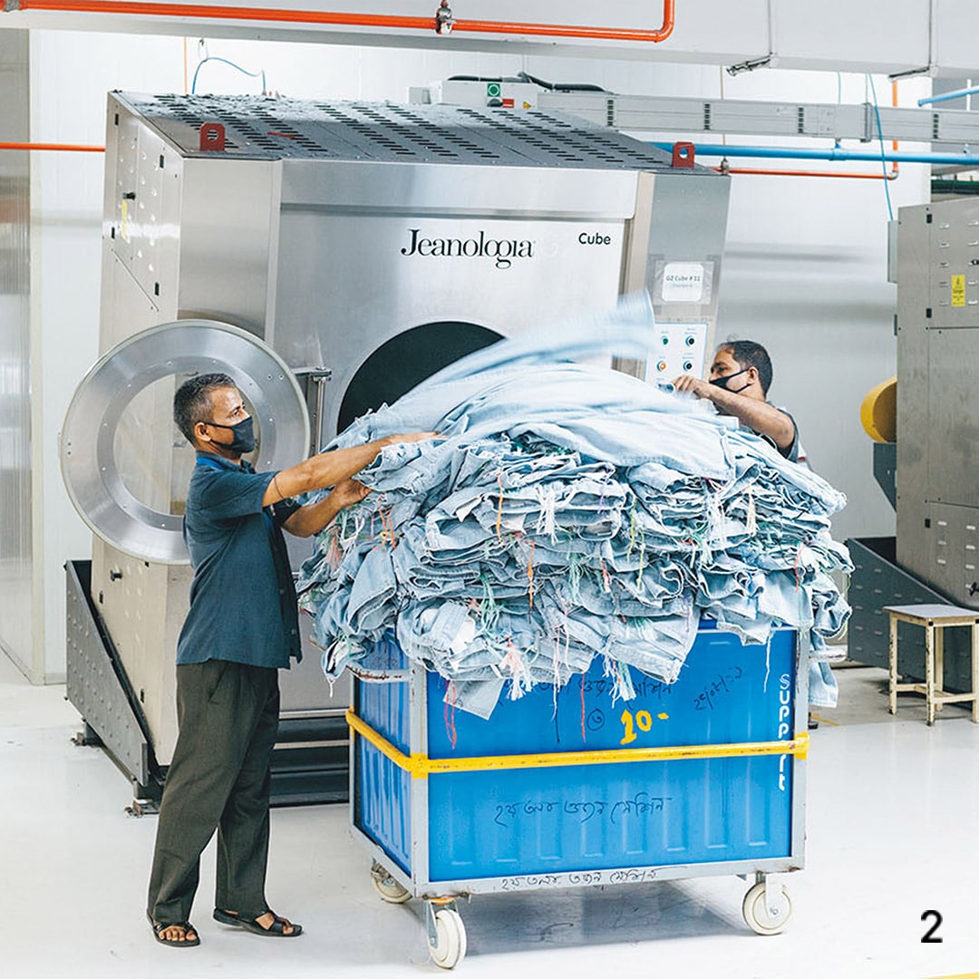 Thinking of jeans in terms of cooking, Kaihara selvedge denim is the main ingredient. From there, JIC in LA comes up with the entire recipe, from the choice of fabrics to the silhouette and all the finishing touches. Based on the pattern JIC creates, Pacific Jeans, located in the city of Chattogram in southeast Bangladesh, sews and finishes the product. We have been working with Pacific Jeans for 13 years, since 2008, over which period we have both grown a great deal and developed a firm bond of trust. Pacific Jeans has the same sustainable development facilities and cutting-edge systems as JIC along with similar equipment.