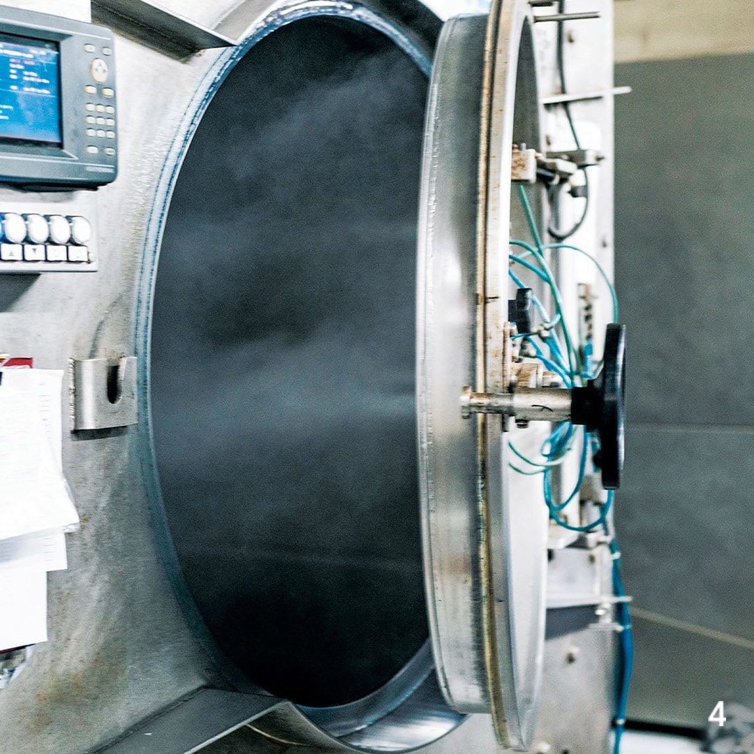 Washing denim requires an immense amount of water. Except water is a finite resource. That said, washed denim is the industry standard. Still, we want to lessen our environmental impact. But people want their jeans to look genuinely faded. To break free from this negative spiral, JIC is constantly researching and developing new, sustainable methods, like ozone washing, where dissolved ozone is utilized to bleach the denim, and nano bubble technology, in which a smaller amount of water, turned into mist, is sprayed at the jeans to fade them. As a result, the water required for washing has been reduced by as much as 99%, and 90% on average.*