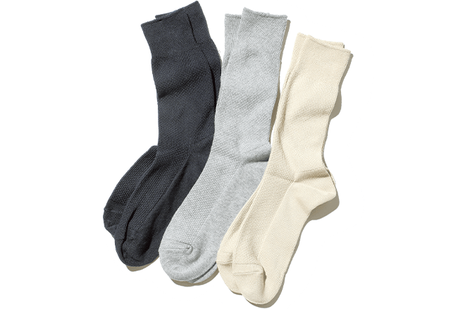 What’s lighter on the feet than sandals? 1. Sport sandals from UNIQLO and JW ANDERSON in navy blue with vivid yellow accenting. Perfect with a pair of colorblock socks. 2. These chic black strap sandals look elegant with fine gauge ankle socks. 3. This pair of sandals from Uniqlo U easily combines a toe thong and an ankle strap, in muted tones. Just right for denim. 4. Espadrilles debut this season. This cheery yellow is like a sunflower.
